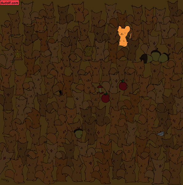 Lo scenario che vi proponiamo oggi è di nuovo uno degli stupendi disegni di Doodolf, l’artista ungherese specializzato in rappresentazioni che si prestano sempre benissimo al ruolo di test visivi. Oggi l’obiettivo è trovare un grazioso roditore mimetizzato all’interno di un club di scoiattoli.