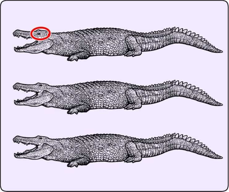 Bentornato/a su Aforismi.it. Oggi ci troviamo di fronte ad un quiz davvero complicato: tre feroci alligatori sembrano essere perfettamente identici ma uno, si distingue dagli altri per un dettaglio davvero microscopico ma che una volta notato non potrai più fare a meno di vedere. Riesci a notarlo? Prima di svelarti qualsiasi suggerimento ti lascio un po’ di tempo per guardare attentamente l’immagine.