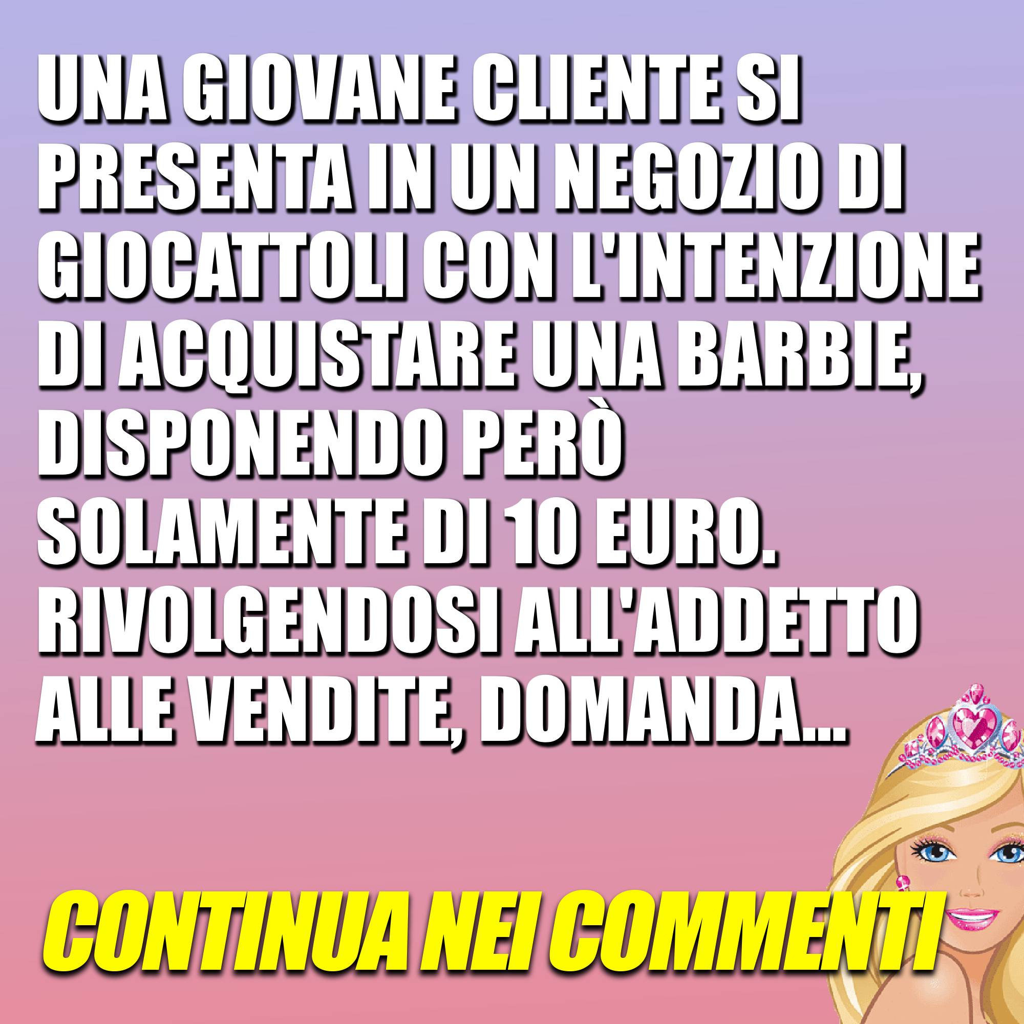 Una giovane cliente si presenta in un negozio di giocattoli con l’intenzione di acquistare una Barbie, disponendo però solamente di 10 euro… Continua19 Novembre 202319 Novembre 2023di davidSOCIETÀ