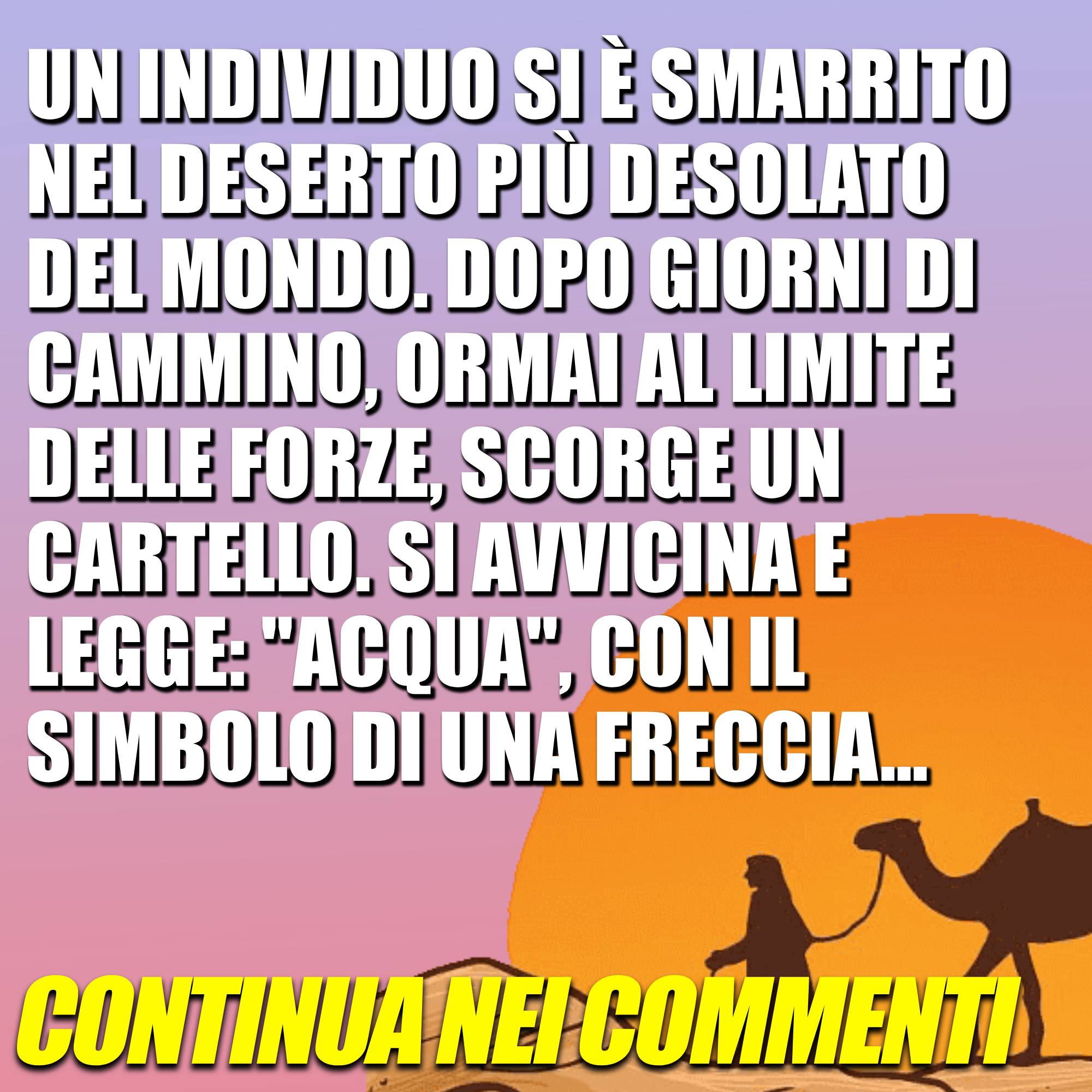 Un individuo si è smarrito nel deserto più desolato del mondo. Dopo giorni di cammino, ormai al limite delle forze, scorge un cartello… Continua15 Novembre 202315 Novembre 2023di davidSOCIETÀ