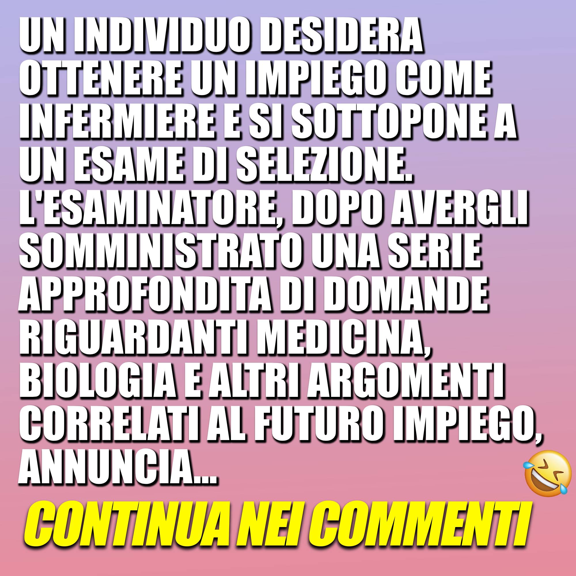 Un individuo desidera ottenere un impiego come infermiere e si sottopone a un esame di selezione… Continua19 Novembre 202319 Novembre 2023di davidSOCIETÀ