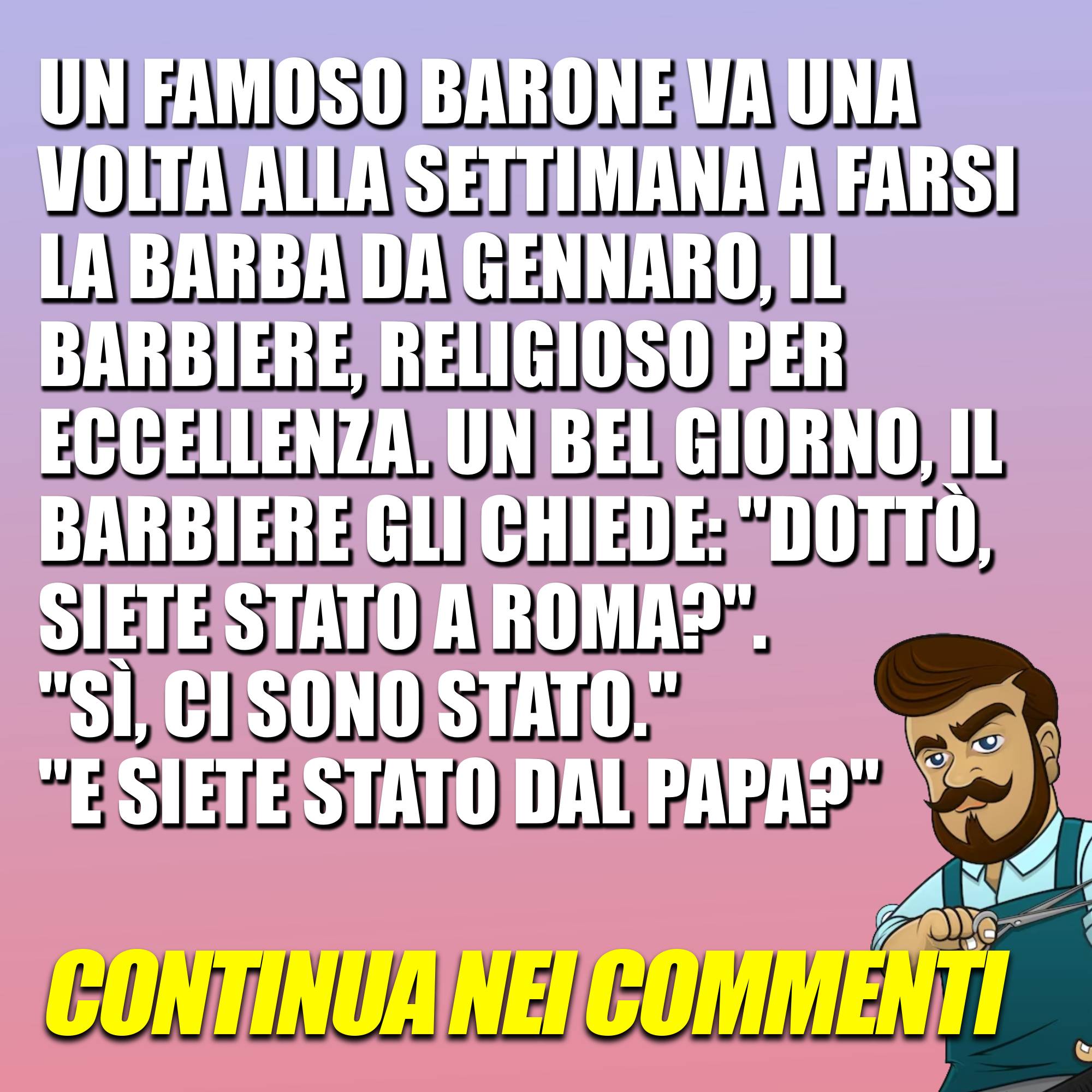 Un famoso barone va una volta alla settimana a farsi la barba da Gennaro, il barbiere, religioso per eccellenza. Un bel giorno, il barbiere gli chiede… Continua15 Novembre 202315 Novembre 2023di davidSOCIETÀ