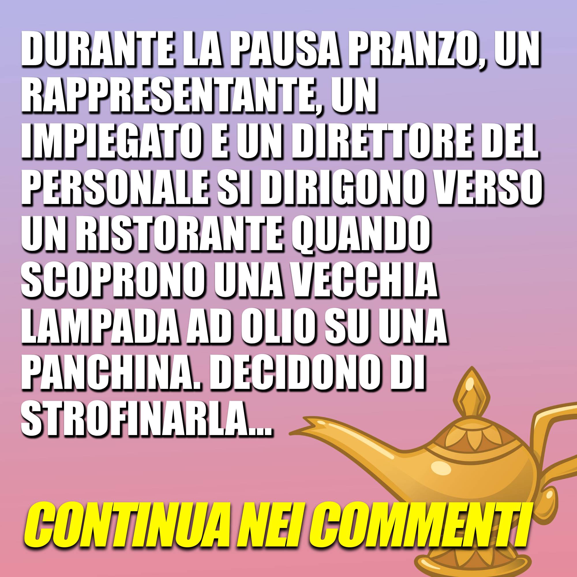 Durante la pausa pranzo, un rappresentante, un impiegato e un direttore del personale si dirigono verso un ristorante quando scoprono una vecchia lampada ad olio su una panchina… Continua10 Novembre 202310 Novembre 2023di davidSOCIETÀ