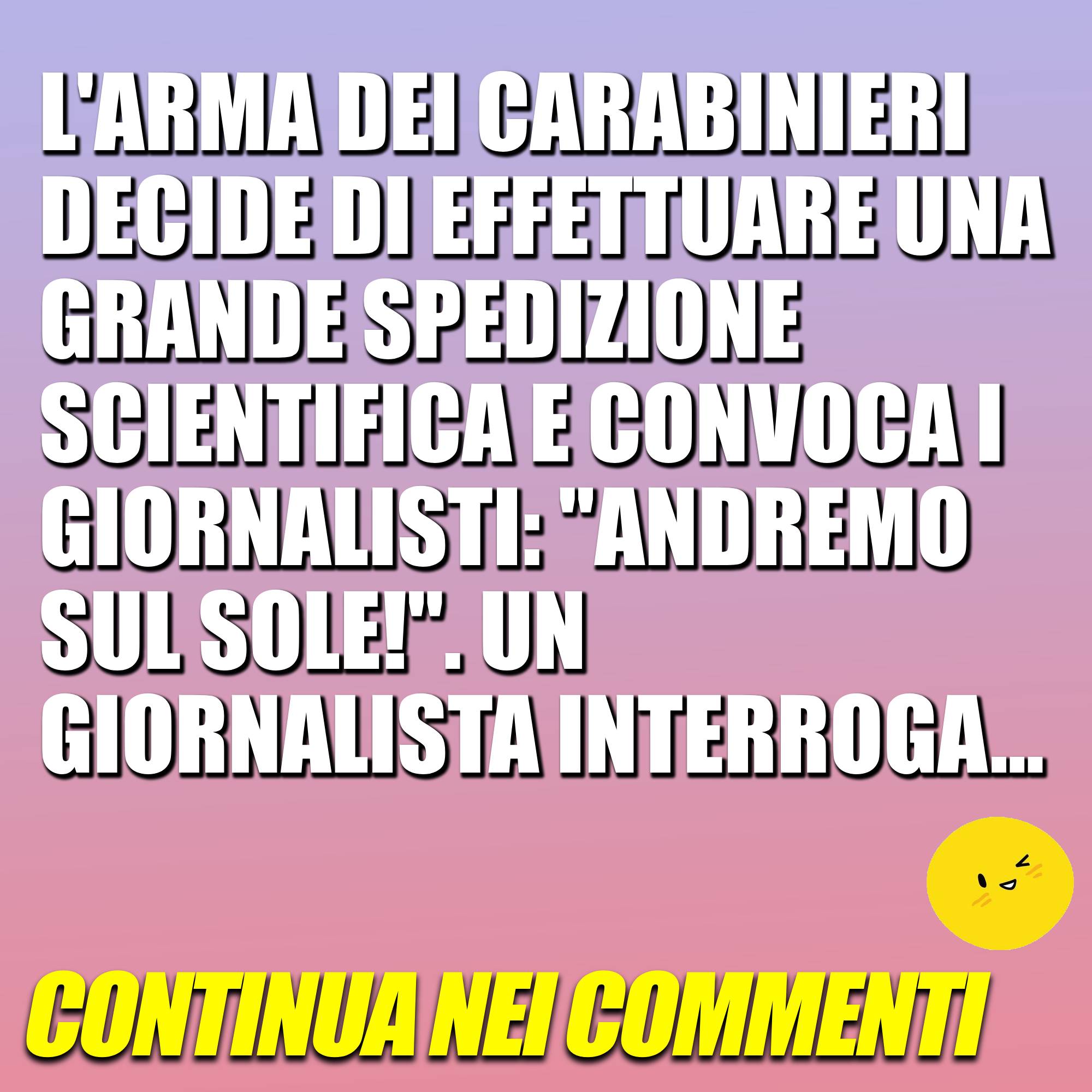 L’arma dei Carabinieri decide di effettuare una grande spedizione scientifica e convoca i giornalisti… Continua13 Novembre 202313 Novembre 2023di davidSOCIETÀ