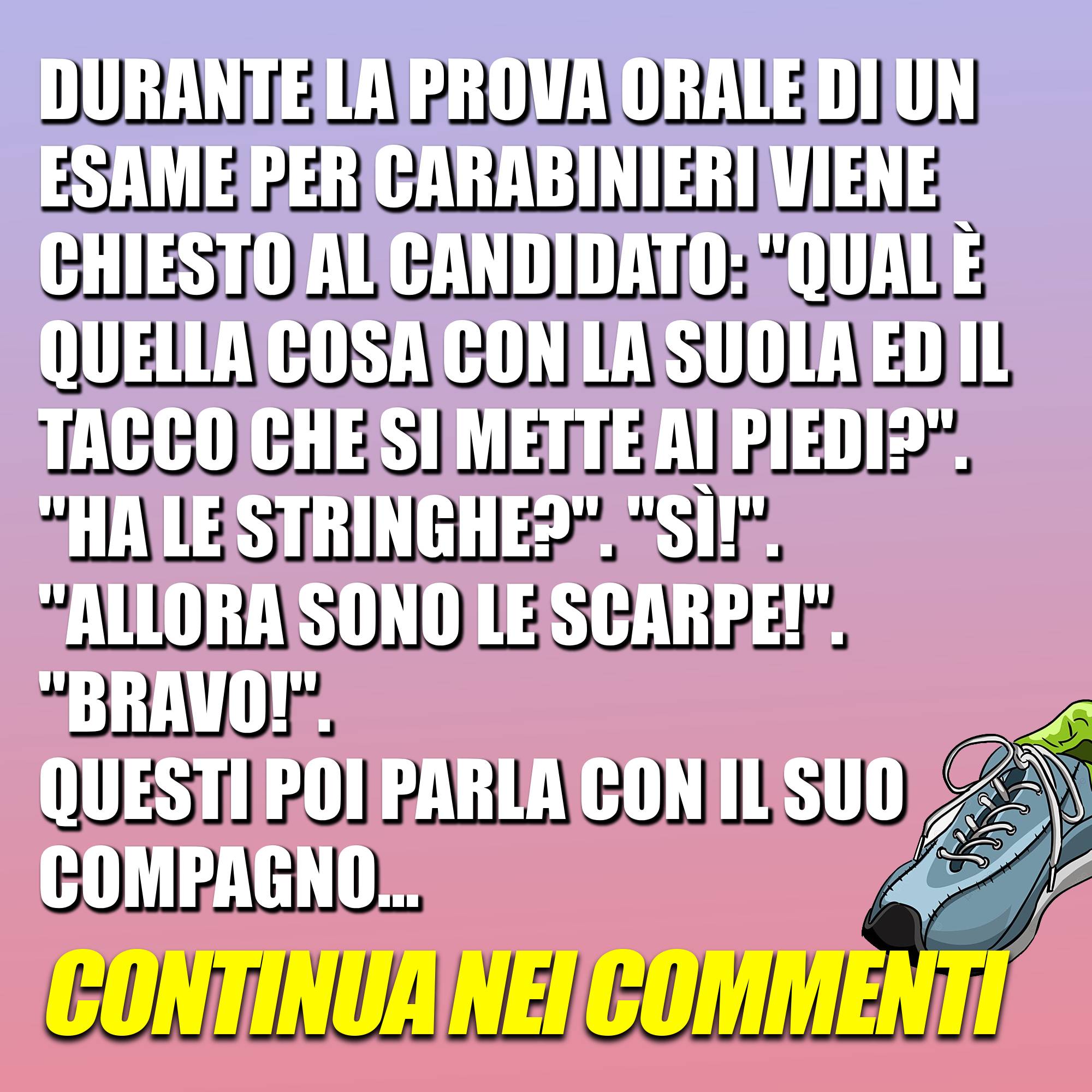 Durante la prova orale di un esame per carabinieri, viene chiesto al candidato… Continua15 Novembre 202315 Novembre 2023di davidSOCIETÀ