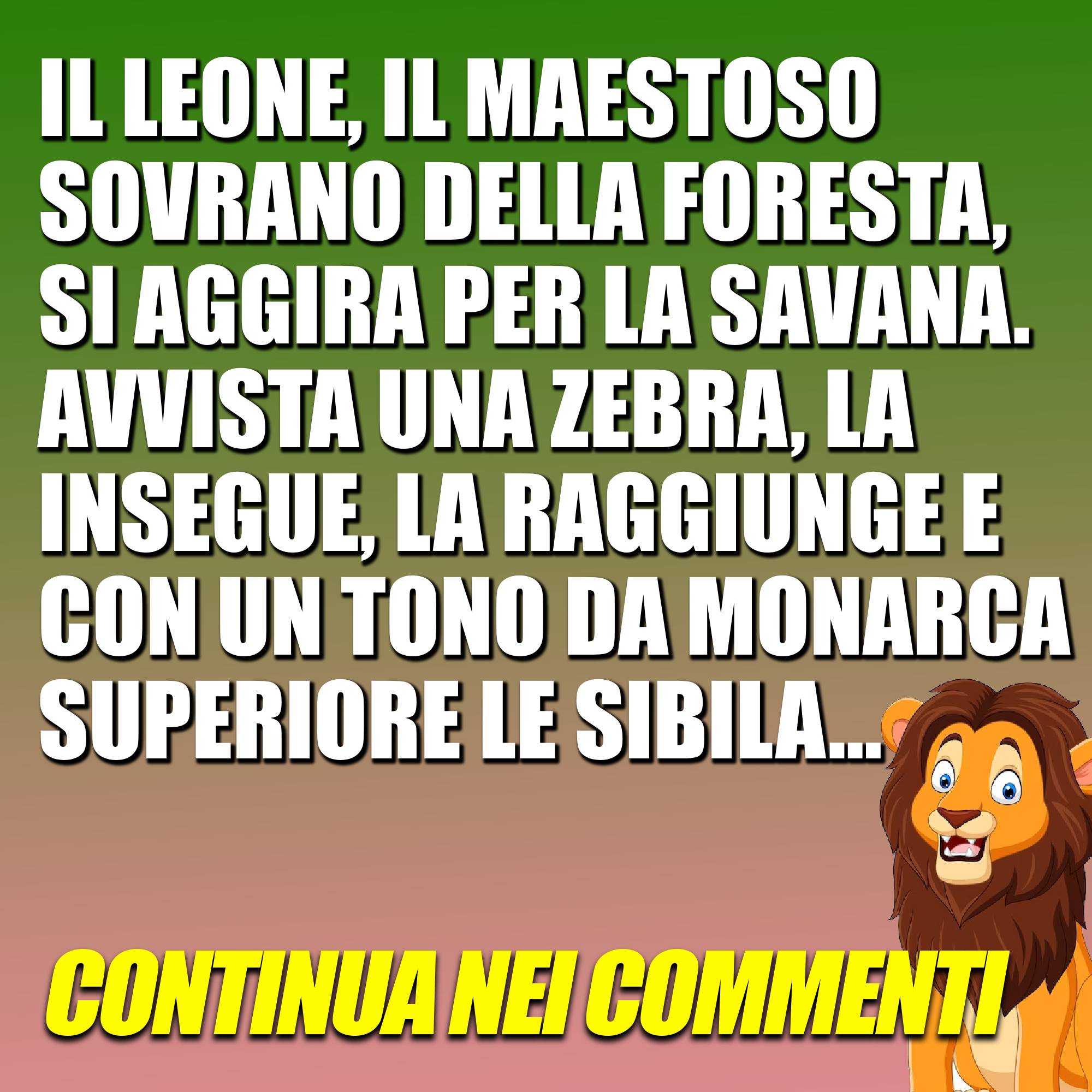 Il leone, il maestoso sovrano della foresta, si aggira per la savana. Avvista una zebra, la insegue, la raggiunge e con un tono da monarca superiore le sibila… Continua9 Novembre 20239 Novembre 2023di davidSOCIETÀ