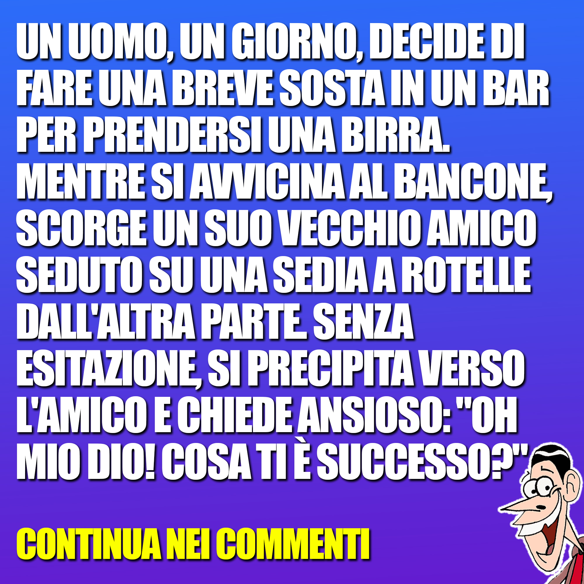 Un uomo, un giorno, decide di fare una breve sosta in un bar per prendersi una birra. Mentre si avvicina al bancone, scorge un suo vecchio amico seduto su una sedia a rotelle… Continua10 Ottobre 202310 Ottobre 2023di davidSOCIETÀ