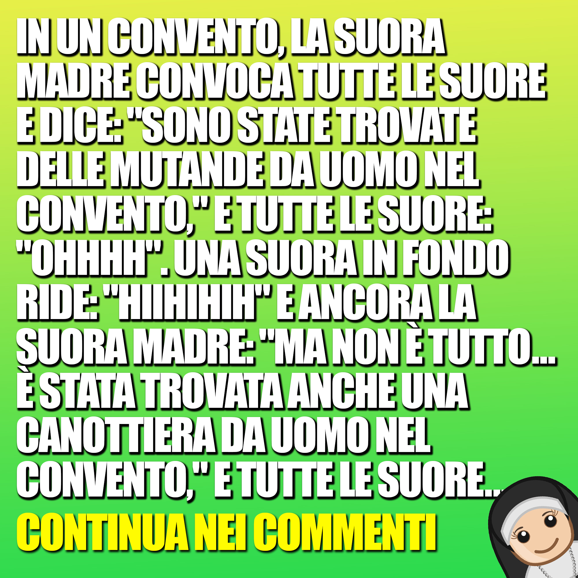 In un convento, la suora madre convoca tutte le suore e dice: “sono state trovate delle mutande da uomo nel convento,” e tutte le suore… Continua28 Settembre 202328 Settembre 2023di davidSOCIETÀ