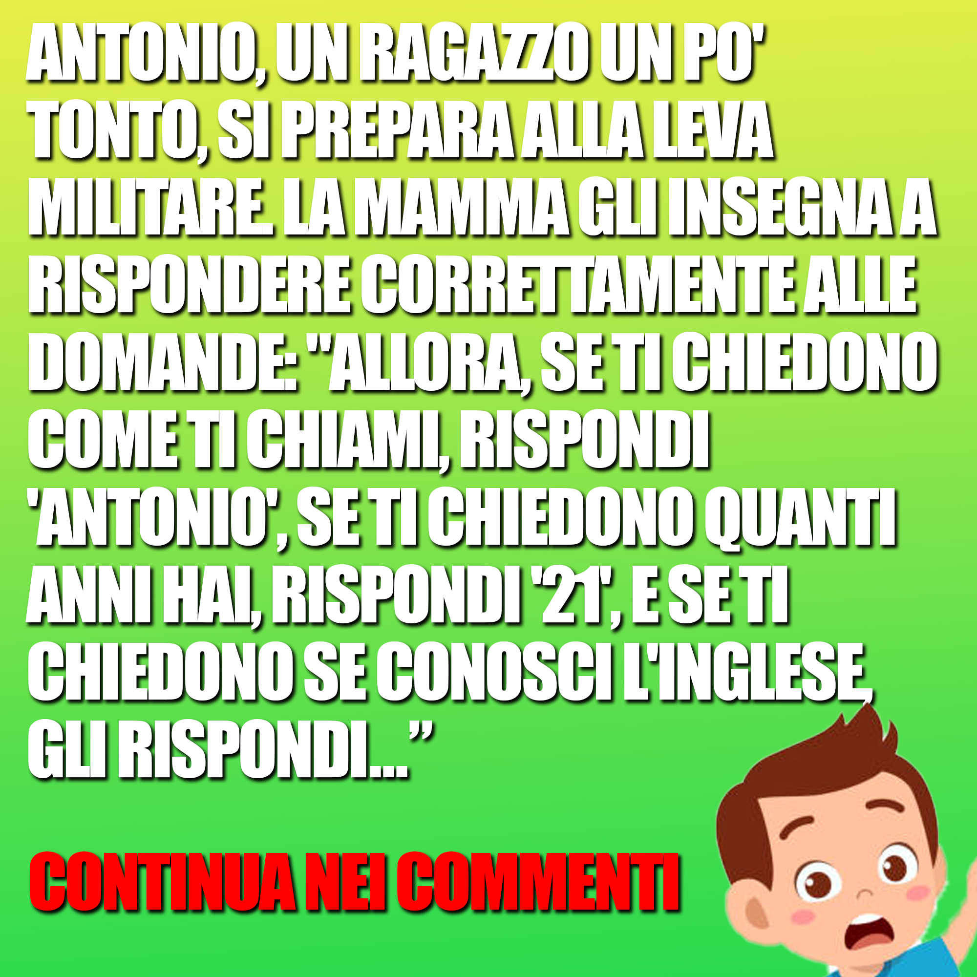 Antonio, un ragazzo un po’ tonto, si prepara alla leva militare. La mamma gli insegna a rispondere correttamente alle domande… Continua2 Ottobre 20232 Ottobre 2023di davidSOCIETÀ