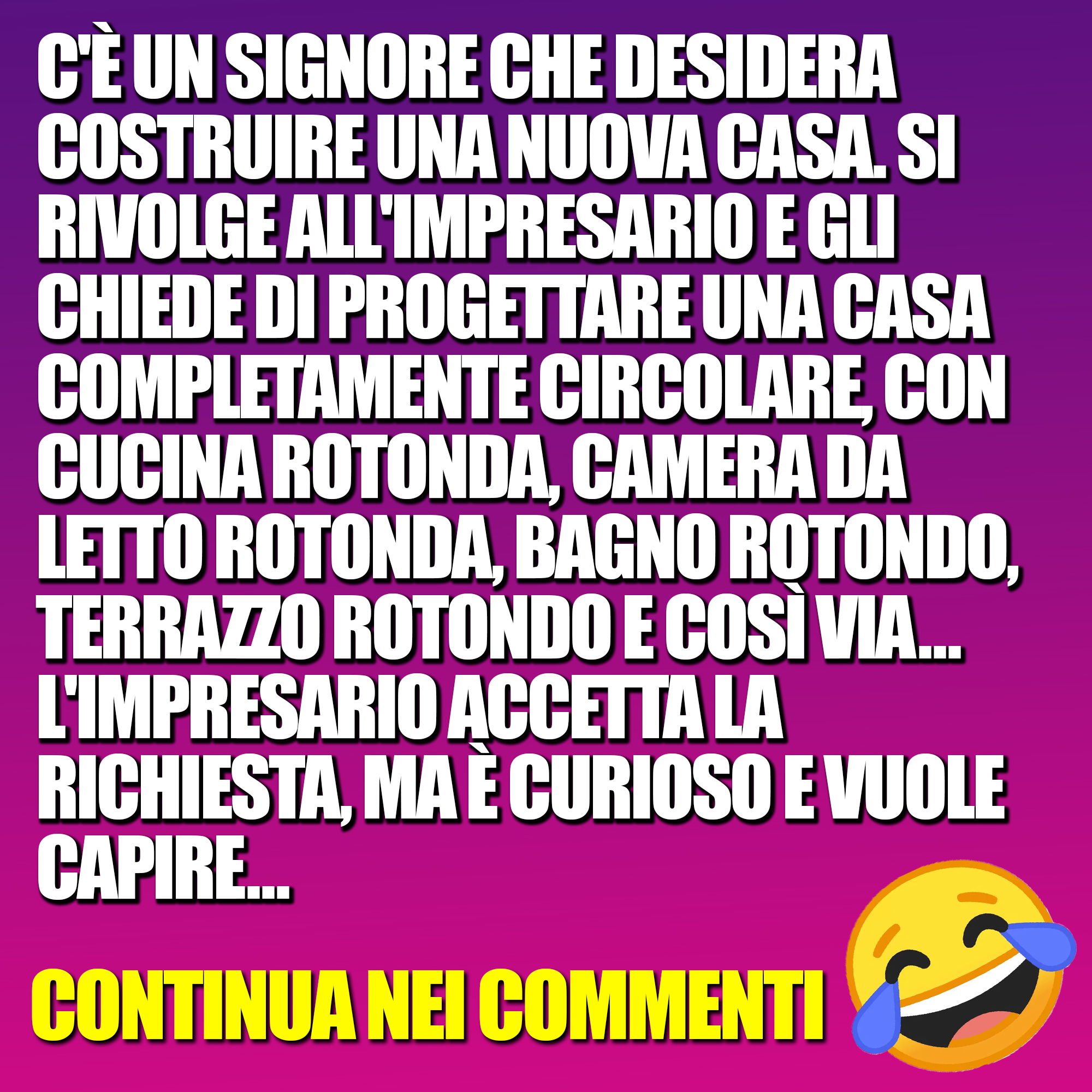 C’è un signore che desidera costruire una nuova casa. Si rivolge all’impresario e gli chiede di progettare una casa completamente circolare… Continua27 Settembre 202328 Settembre 2023di davidSOCIETÀ