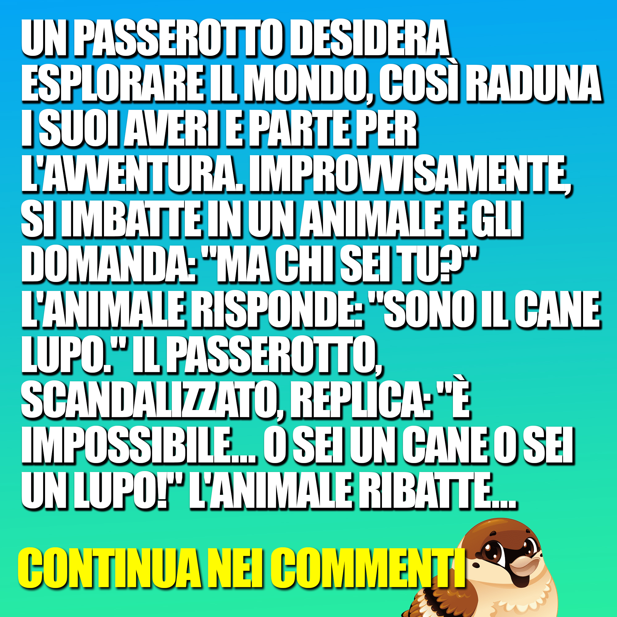 Un passerotto desidera esplorare il mondo, così raduna i suoi averi e parte per l’avventura. Improvvisamente, si imbatte in un animale e gli domanda… Continua28 Settembre 202328 Settembre 2023di davidSOCIETÀ