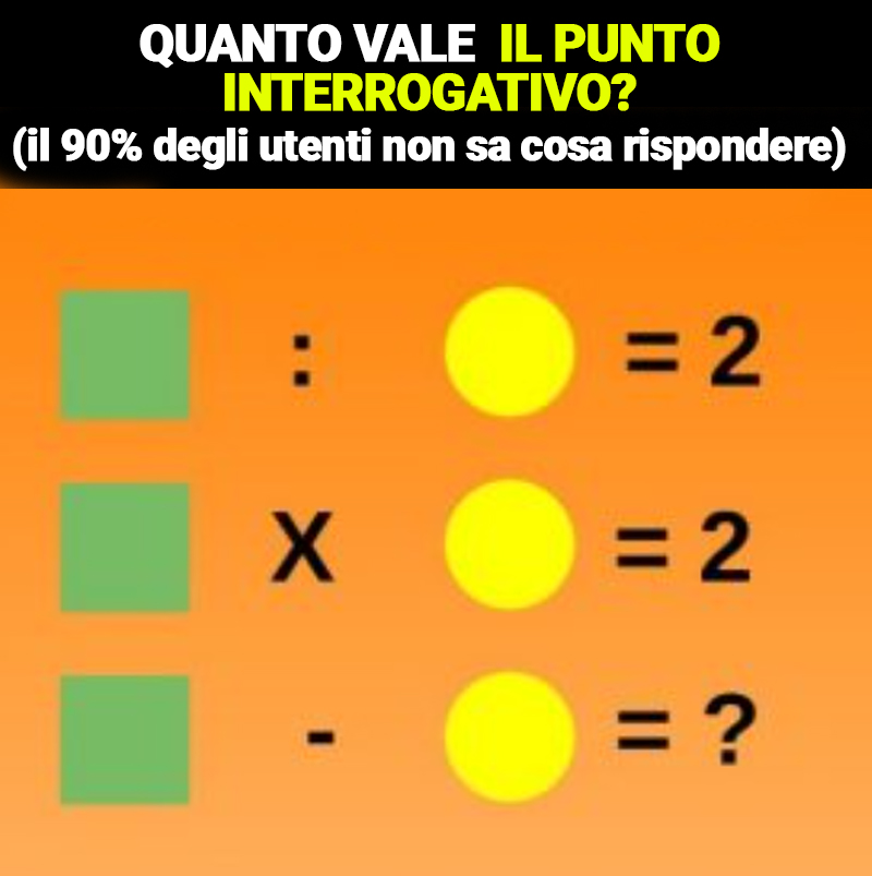 L’immagine in questione sembrerebbe ad un primo sguardo irrisolvibile ma con le giuste considerazioni, risolvere questo compito sarà una passeggiata. Per scoprire la soluzione, l’unico modo è tentare di capire a quale cifra corrispondono il quadrato verde ed il cerchio giallo. Vi viene in mente qualcosa?
