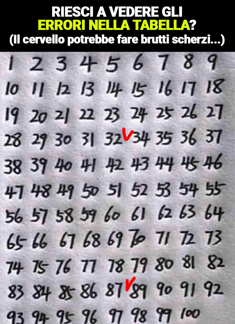 Benvenuti o bentornati su Aforimi.it, la vostra pagina culturale preferita dove oltre a migliaia di recensioni di libri potete trovare quiz, test ed indovinelli divertentissimi. L’immagine che vi proponiamo oggi rappresenta un elenco di numeri in fila. In quanto tempo riuscireste a dire quali sono gli errori al suo interno?
