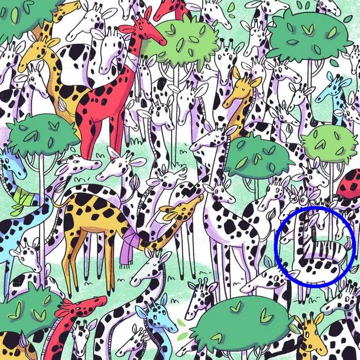 Benvenuti oppure bentornati su Aforismi.it, la testata giornalistica di stampo culturale con la quale potrete mantenere allenati i vostri neuroni con nuovissimi test, quiz ed indovinelli che faranno scervellare voi e i vostri amici. Siete pronti per questa sfida? Se la risposta è si iniziamo. L’immagine che vi presentiamo oggi è una selva abitata da giraffe dal particolare manto, riesci ad individuare la zebra?