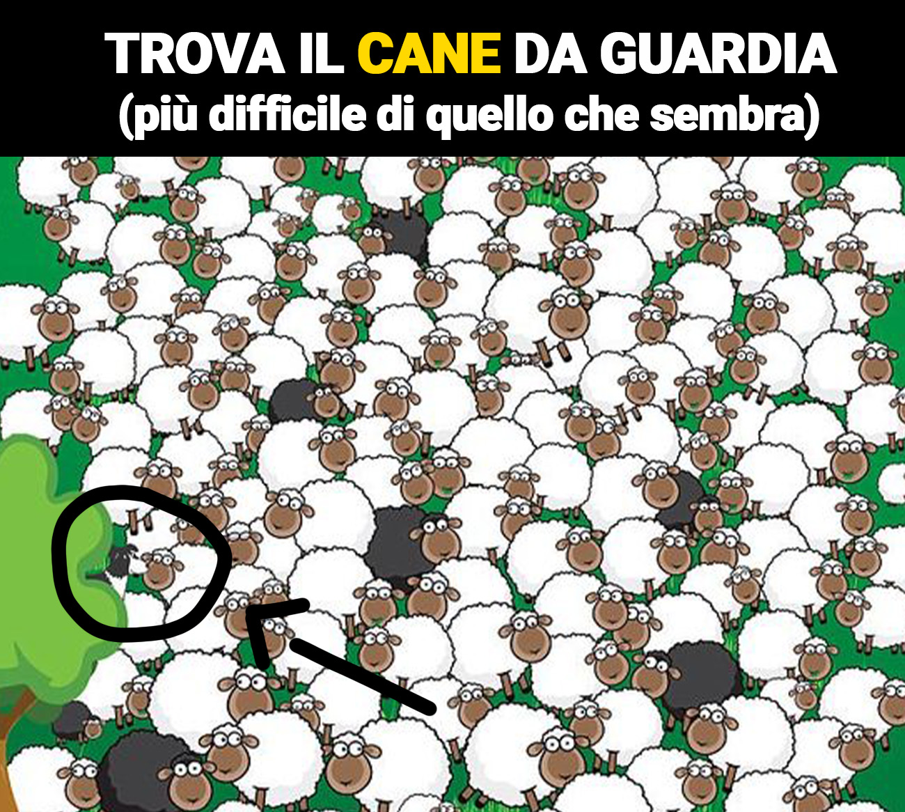 Eccoci tornati con un nuovo quiz, creato dal nostro artista ungherese di fiducia Dudolf, famoso in tutto il mondo per le sue creazioni divertenti e simpatiche. Il test visivo di oggi ci fa venire in mente il famoso racconto del cane e delle pecore ingrate. Non la conoscete, concentratevi sull’immagine qui sotto, riuscite a trovare il cane da guarda? Nel caos in cui non riusciste nell’impresa ve la raccontiamo.
