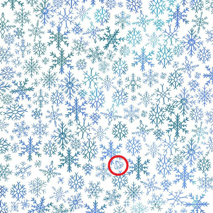 Eccoci tornati con una delle bellissime immagini che spopolando ogni giorno sul web. Quella che vi presentiamo oggi è un immagine davvero particolare, una serie di fiocchi di neve stilizzati compongono la quasi totalità della scena, riesci a vedere dov’è nascosto il diamantino?