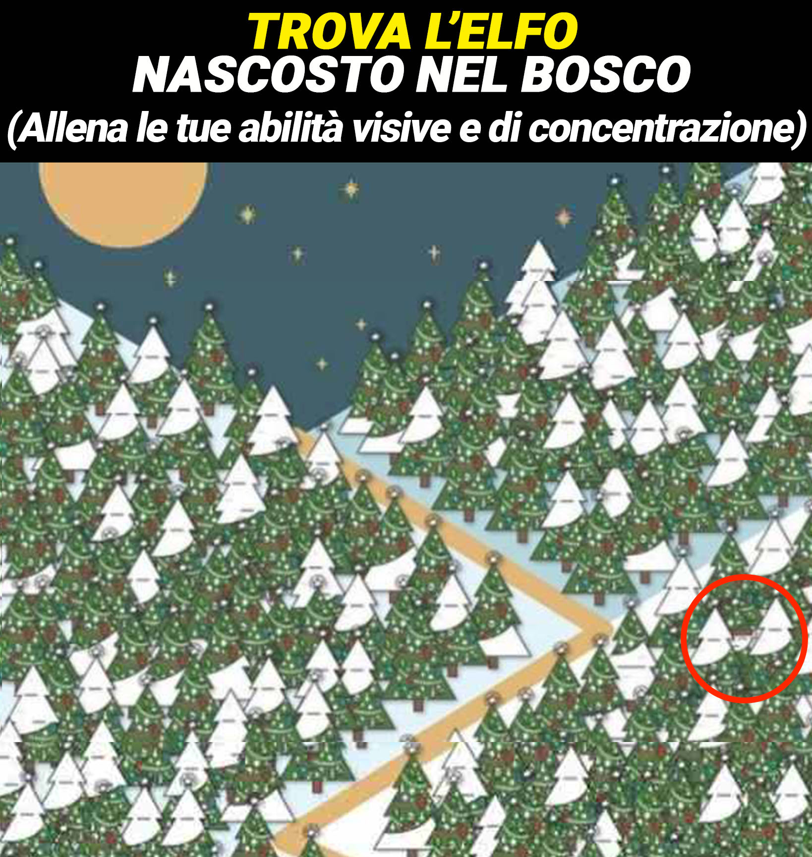 Benvenuti su Aforismi.it, il giornale online dove ogni giorno, oltre a poter leggere le più accurate recensioni sui libri più in voga del momento, avrete l’opportunità di stimolare la vostra materia grigia con rompicapi, quiz ed enigmi di altissimo livello e difficoltà. Se siete pronti per questa nuova sfida vi presentiamo il quiz visivo di oggi. Un folto bosco pieno di alberi nasconde un elfo, riesci a vederlo?