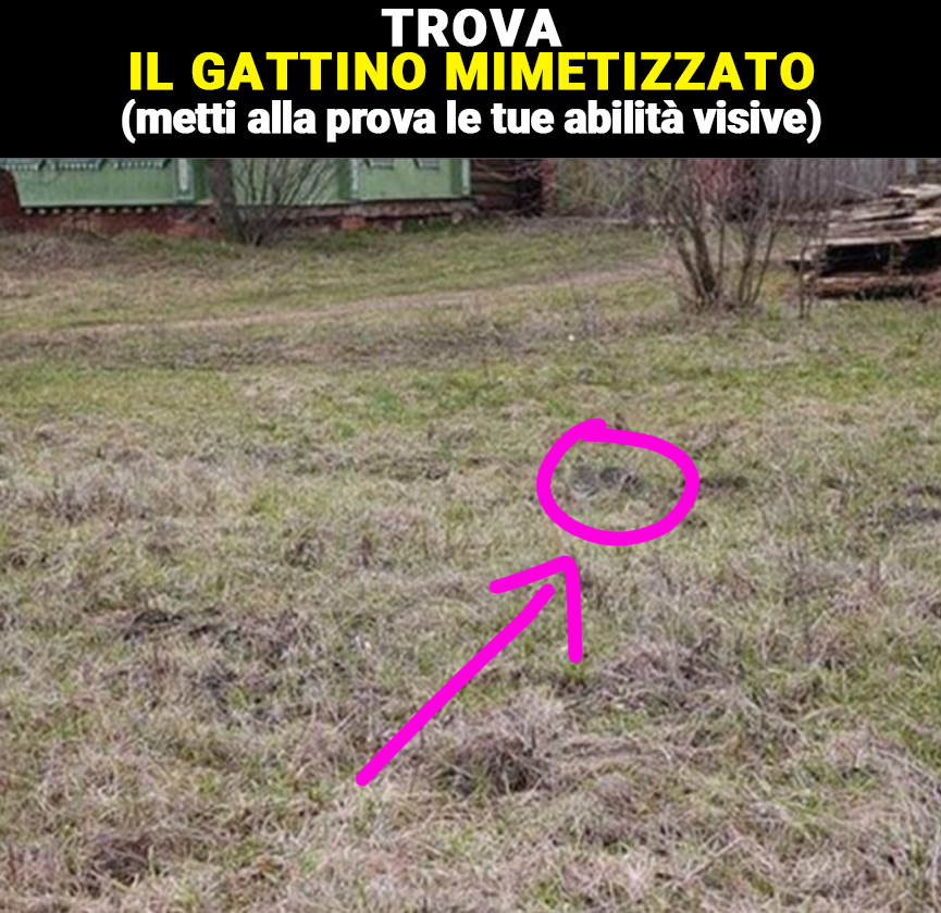 Benvenuti o bentornati su Aforismi.it la vostra pagina preferita riguardo quiz, enigmi e rompicapo. Il test di oggi è un’immagine realistica, che rappresenta un vasto giardino all’apparenza spoglio. C’è tuttavia un gattino che sta riposando, perfettamente mimetizzato tra i fili d’erba. Riesci a vederlo?