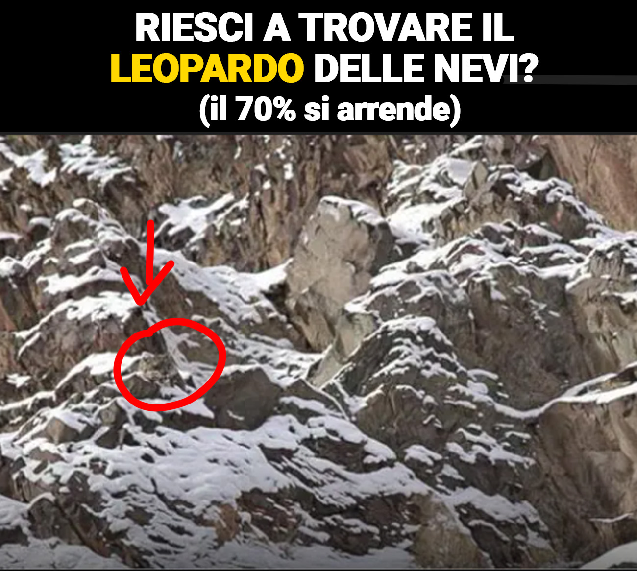 Benvenuti o bentornati sulla nostra pagina. Oggi ecco per voi un nuovo test visivo, questa volta di tipo realistico. Utilizzare fotografie come test visivi è, a nostro parere, un’occasione imperdibile. Scatti spontanei danno vita a test visivi difficilissimi ma allo stesso tempo divertenti. Il quesito di oggi è il seguente: Riesci a trovare il leopardo delle nevi?