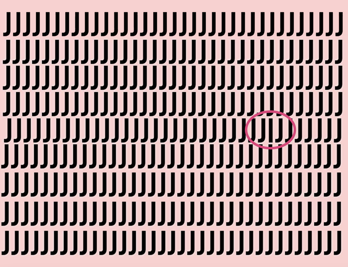 Bentornati in questa nuova sfida visiva. L’immagine in questione è costellata di J. Riesci a trovare la lettera intrusa?