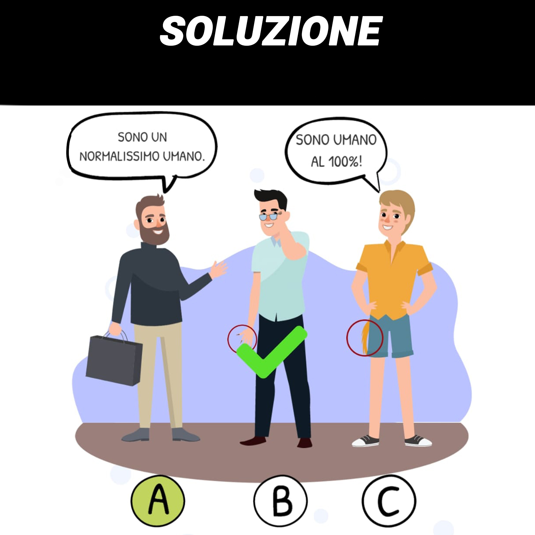 Arrivati a questo punto restano in ballo solo l’uomo A e l’uomo C. Non c’è davvero alcun dettaglio ad aver attirato la vostra attenzione? Se così fosse non preoccupatevi vi mostriamo noi le prove e finalmente potrete scoprire chi è l’unico umano presente in questa immagine.