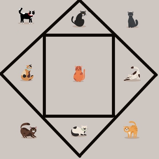 Eccoci tornati con un nuovo quiz che vi consentirà di mettere alla prova le vostre abilità di pensare in maniera alternativa. Nell’immagine che segue ci sono 9 gatti, posizionati in modo davvero ben pensato. Potete disegnare solamente due quadrati ma tenete di vista l’obiettivo, tutti devono essere separati gli uni dagli altri.