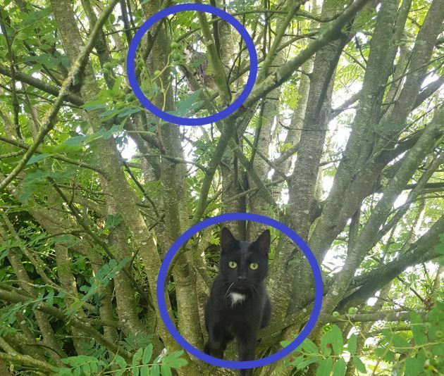 Sappiamo bene come i gatti amino nascondersi nei posti più assurdi e questo è proprio uno di quei casi. Non lasciatevi confondere da foglie, rami e fronde, mirate solamente all’obiettivo, ma se ancora vi sentiste spaesati provate a guardare la soluzione.