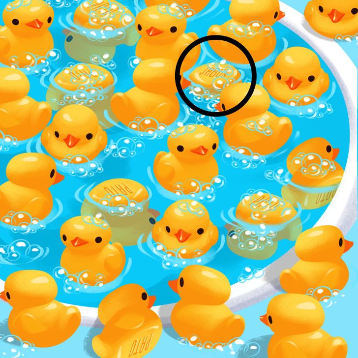 Bentornati su Aforismi.it, eccoci pronti con una nuovo test visivo davvero curioso. Una vasca da bagno è piena di papere giocattolo. Sì avete capito bene le classiche paperelle divenute iconiche nella cultura pop occidentale, strettamente collegata al concetto di bagno. Divertenti per i bambini, adorabili per i grandi, queste papere hanno fatto la storia e ancora oggi ne vengono prodotte a migliaia in forme e colori differenti. Ma tornando a noi, riesci a vedere la saponetta?