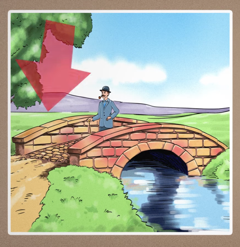 Eccoci tornati con un nuovo rompicapo visivo davvero speciale e poco conosciuto. La rappresentazione di una perfetta giornata di sole dove un uomo dallo stile un po’ retrò sta attraversando un ruscello attraverso un piccolo ponte. Anche se tutto sembrerebbe essere al proprio posto c’è un errore nell’immagine ben nascosto ma fondamentale. Riesci a vederlo?