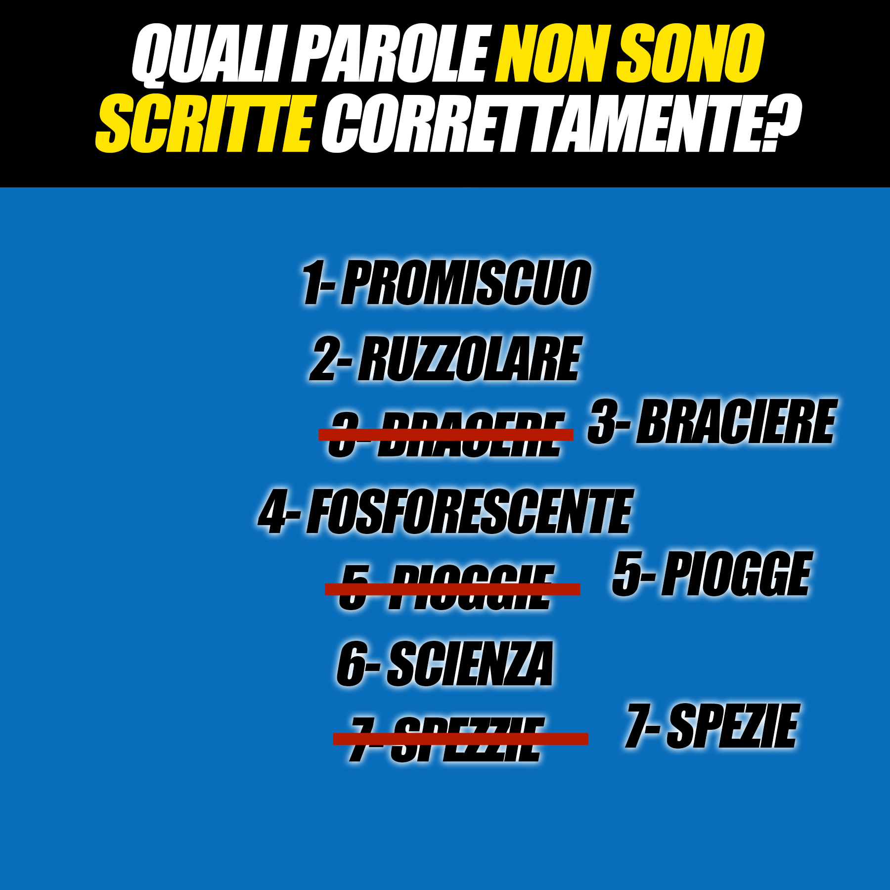 Doppie, C/Q e SCE/SCIE sono tra gli errori più diffusi tra gli italiani. Sarà per i dialetti, per la complessità della nostra lingua o per il sole cocente, fatto sta che sempre più persone cercano su google la corretta grafie di alcune parole. Testa le tue abilità da prof. e correggi questo elenco, oppure scopri la soluzione.