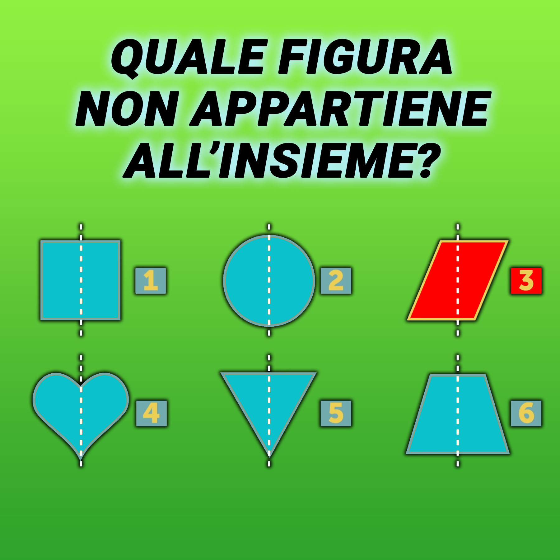 La domanda a cui rispondere per arrivare nel minor tempo possibile ad una soluzione è questa: Cosa accomuna tutte queste immagini? Una volta risolto questo enigma riuscirete facilmente a selezionare la figura che non centra nulla con le altre.