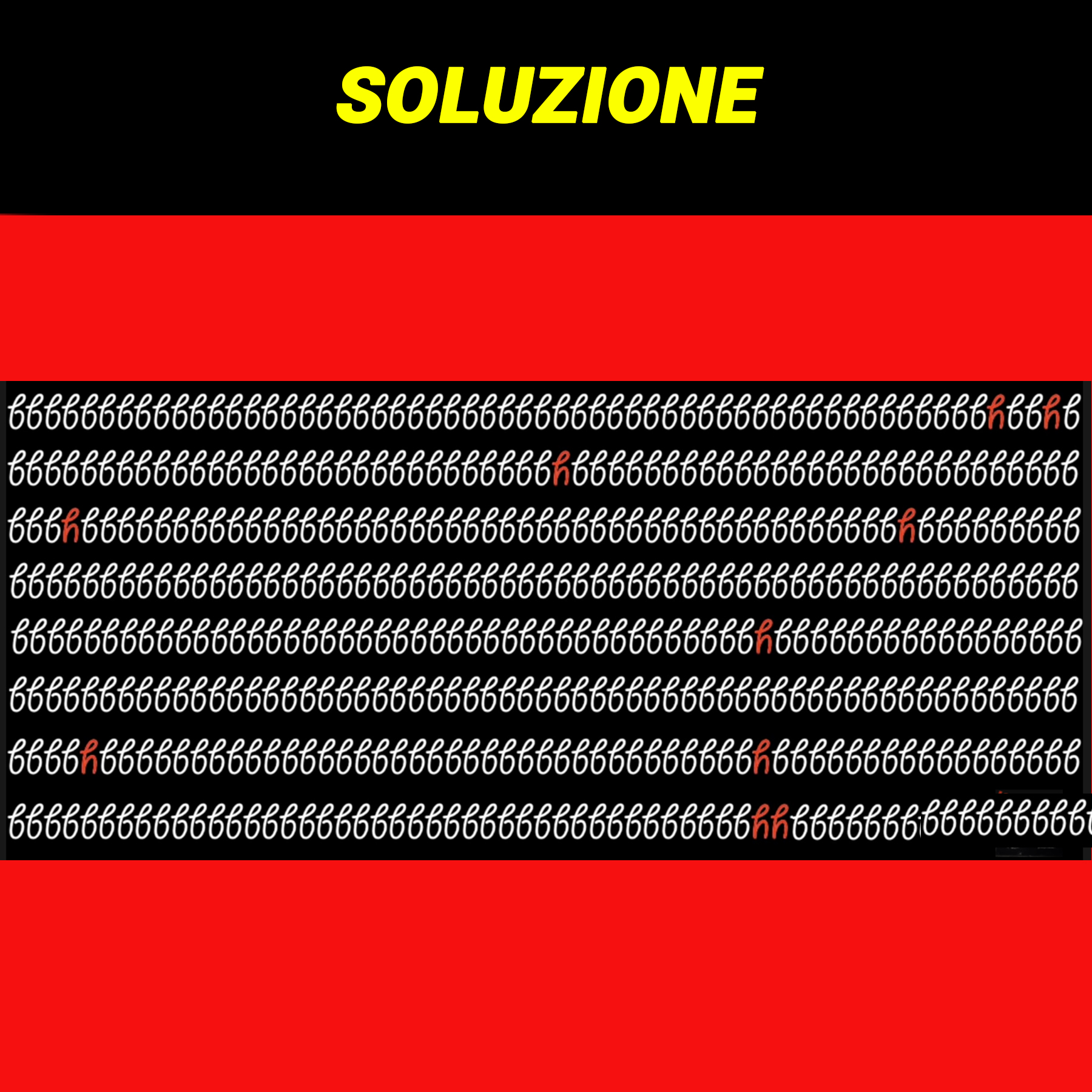 Un ulteriore difficoltà che caratterizza questa sfida è la possibilità di confondersi e non riuscire a contare ogni “h” soltanto una volta senza perdere il conto e senza confondersi. Ma se siete arrivati fino a questo punto e siete ancora con le mani tra i capelli, ecco a voi la soluzione. Più sarete andati vicini al numero corretto è più la vostra mente potrà essere giudicata in grado di cogliere dettagli.