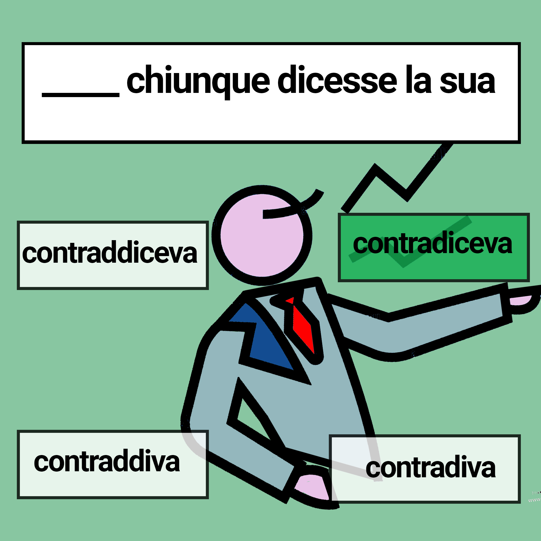 Forse ti sarà sfuggito l’indizio che ti ho dato all’inizio di questo articolo, ma per i più distratti lo ripeto: il verbo contraddire si comporta nella maggior parte dei casi come il verbo dire, questo è uno di quei casi. Dunque pensate a coniugare all’indicativo imperfetto il verbo “dire” e traslate questo modo anche su questo più complesso verbo, oppure guardate la soluzione qui sotto.