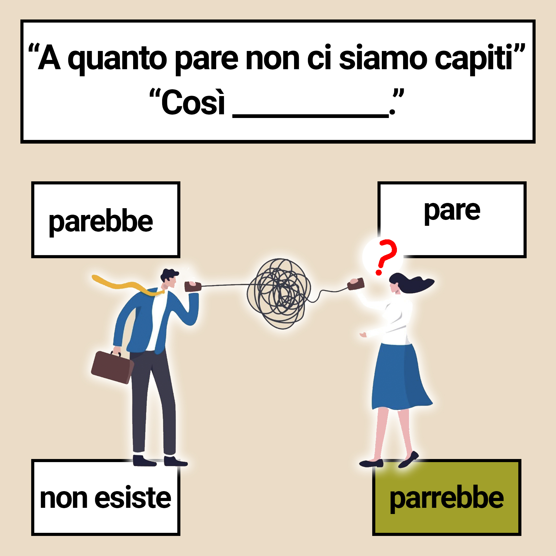 Considerando la prima affermazione verrebbe da ripetere la stessa forma del verbo utilizzata in precedenza: “pare”. Tuttavia il questo caso non è l’opzione corretta. Allora, tra le altre tre rimanenti quale sceglieresti?